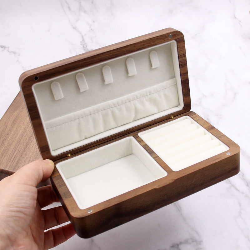 Ambachtelijk vervaardigde houten sieradendozen met persoonlijke gravure. Een tijdloze herinnering voor elk bijzonder moment.